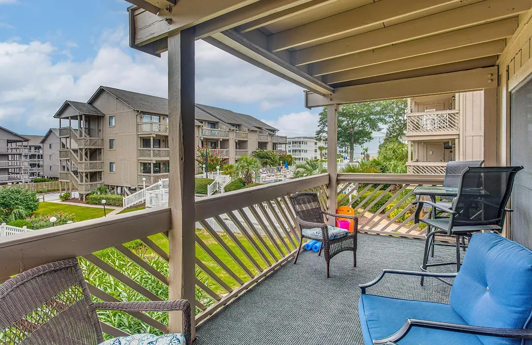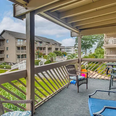Poolside Fun And Ocean Strolls Myrtle Beach Oasis! apartment includes a balcony and a fully equipped kitchen with an air conditioner for utmost comfort. This apartment is equipped with a bathroom that features a dryer and bath sheets. You'll also come across a separate toilet, a shower, and a washing machine.